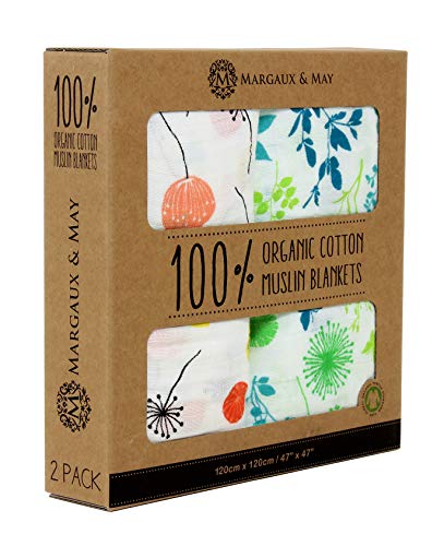 Organic Muslin Swaddle Blanket by Margaux & May - Dandelion & Meadow - 47 x 47 inch Ultra Soft Muslin Swaddle Blankets - Perfect Baby Shower Gift