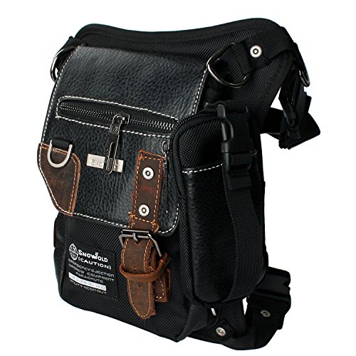 Hengyun Leatherette Tactical Drop Leg Bag Canvas Fanny Pack Waist Pack Hunting Bag, Thigh Pack Waist Belt Bag, Black Style D