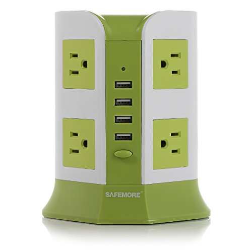 Safemore Smart 8-Outlet with 4-USB Output Power Strip (Green and White)