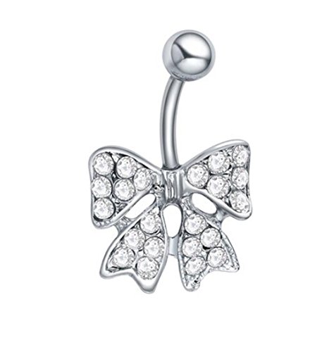 Raphycool 316L 14G Clear Crystals Bow Bowknot Belly Button Navel Ring Bar Body Jewellery