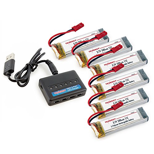Tenergy T453 Charger for 3.7V Lithium RC Battery + 6pc 500mAh Batteries for UDI818A/818A-1