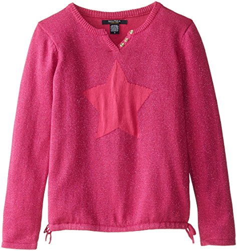 Nautica Girls' Lurex Yarn Sweater with Intarsia Star and Gathered Waist