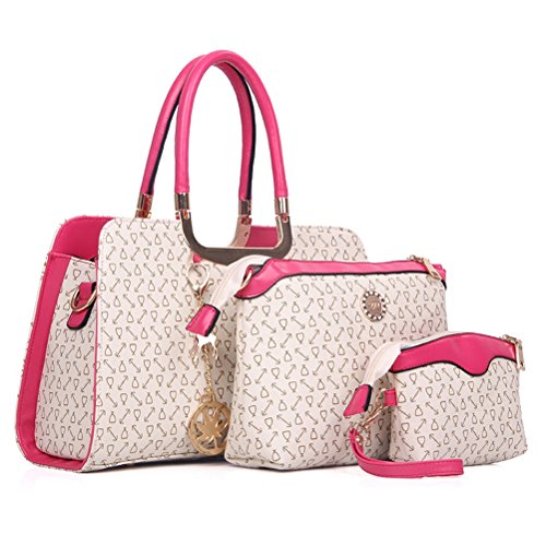 Women's 3Pcs Pu Leather Tote Bag Printing Purse Handbag Set (Beige)
