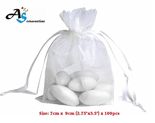 A&S Creavention? Organza Drawstring Jewelry Pouches Bag Party Wedding Gift Bags Candy Bags - 100pcs (7x9cm, White)