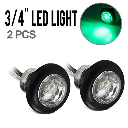 Partsam 2Pcs 3/4 Inch Mini Green Led Trailer Side Marker Clearance Lights Clear Lens Grommet Mount,3/4 led marker lights 3/4 led side marker lights 3/4 led trailer marker lights Truck RV Car Bus Van