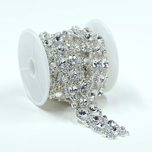 Seasofbeauty 1 Yard Silver Tone Rhinestone Crystal Sewing Trims Applique Costume Chain Silver