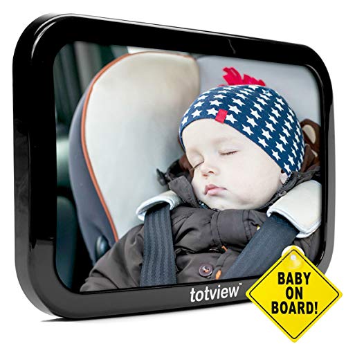 Baby Car Mirror - for Rear Facing Car Seats - Large, Secure Fit Baby Mirror - Easily View Infant in Backseat - Best Newborn Baby Accessory for Travel - Free Baby-On-Board Sign