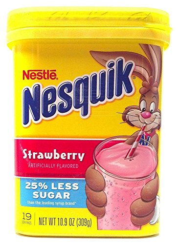 Nestle Nesquik Artifically Flavored Strawberry with 25% Less Sugar Than the Leading Syrup Brand 19 Servings 10.9 Oz. (Pack of 2)