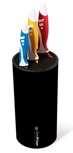 SimPrium - Red Universal Cylinder Knife Block - Light Weight & Compact Storage for up to 12 Kitchen Knives with Unique Slot Design to Protect Blades & Secure Safely, Easy to Clean