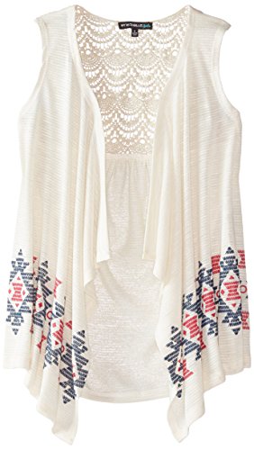 My Michelle Big Girls' Embroidered Sweater Vest with Lace Back Yoke