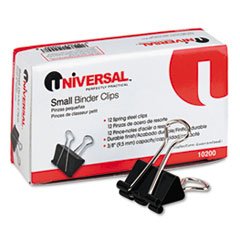 Small Binder Clips, Steel Wire, 3/8" Capacity, 3/4" Wide, Black/silver, Dozen By: Universal