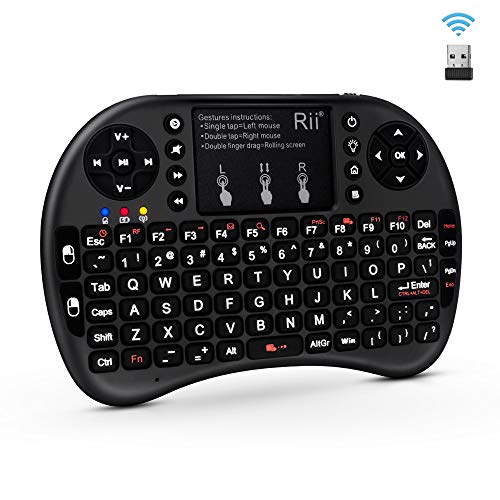 (Upgraded)Rii 2.4GHz Mini Wireless Keyboard with Touchpad,QWERTY Keyboard,LED Backlit,Portable Keyboard Wireless for laptop/PC/Tablets/Windows/Mac/TV/Xbox/PS3/Raspberry Pi .(i8+ Black)