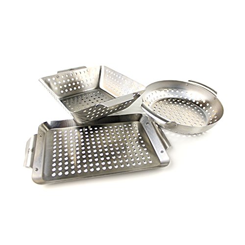 Yukon Glory Set of 3 Professional Barbecue Mini Grilling Basket Set, Heavy Duty Stainless Steel Perforated Grill Baskets for Grilling Veggies, Seafood, and More