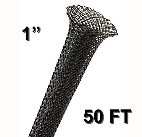Electriduct 1" Black PET Expandable Braided Sleeving Cable Mesh Flexible Wire Sleeve - 50 Feet