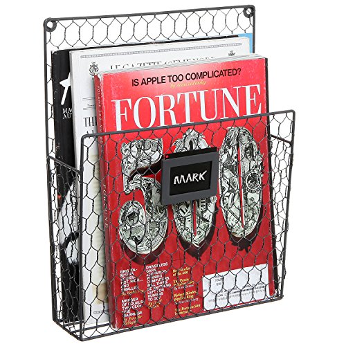 Wall Mounted Rustic Style Chicken Wire Gray Metal Magazine Organizer Basket Rack w/Chalkboard Label