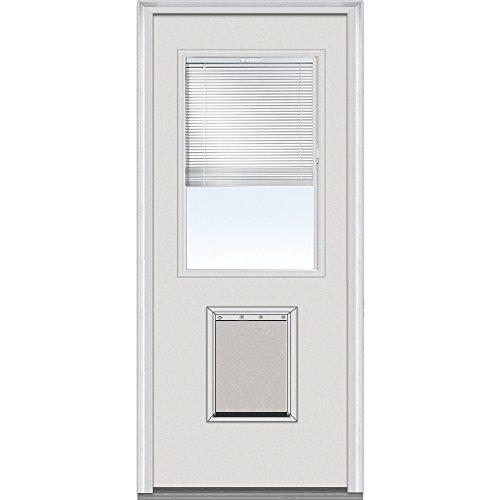 National Door Company EBCF684BLPR30RH Inswing Entry Door, Prehung Right Hand, Internal Mini Blinds with Pet Door Steel, 1/2 Lite, 36" x 80"