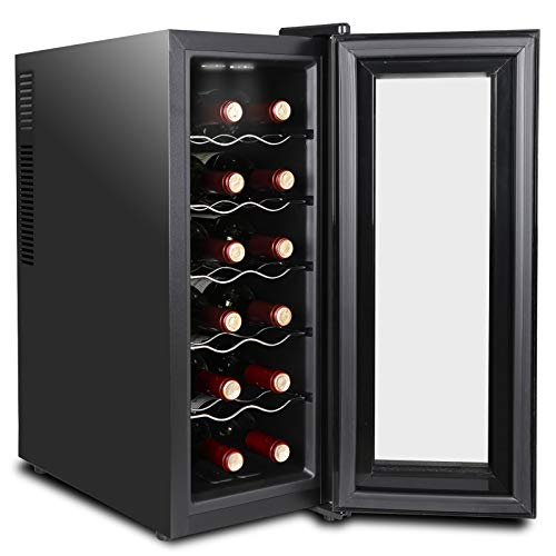 SUPER DEAL 12 Bottle Thermoelectric Wine Cooler Chiller with Digital Control, Freestanding Refrigerator with Glass Door, Quiet Operation (#2)