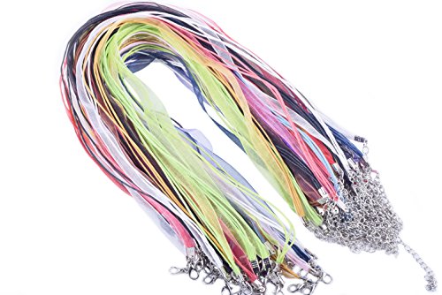 KONMAY 100pcs 17'' Mixed Colors Voile Organza/ribbon Waxed Cotton Necklace Cord with Extension Chain