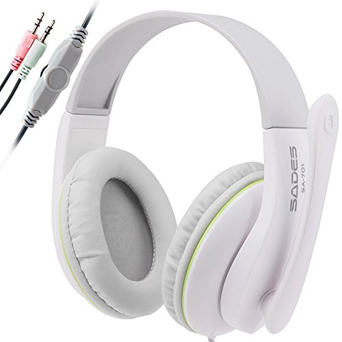 Well-Goal 3.5mm Stereo Headphones Headband PC Gaming Headset with High Sensitivity Microphone Volume Control for Desktop PC(White)
