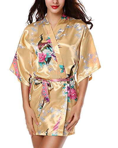 Avidlove Women's Kimono Robes Peacock and Blossoms Silk Nightwear Short Style