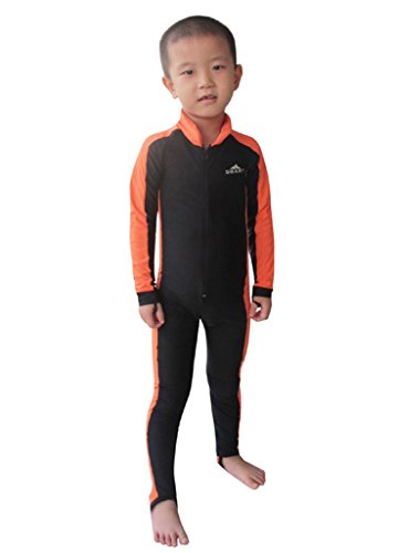 OUO Children Kids One-Piece Swimsuit Blue Long Sleeves Swimwear for Boy and Girls UPF 50+