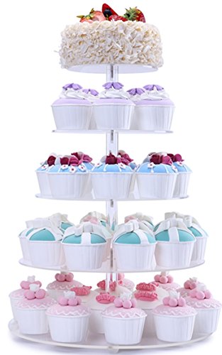 BonNoces 5 Tiers Round Acrylic Pastry Wedding Cupcake Stands Tower Tree-Cupcake Carrier-Clear Tiered Cake Stand Tall Jumbo-Round Dessert Stands-Cupcake Display Stand
