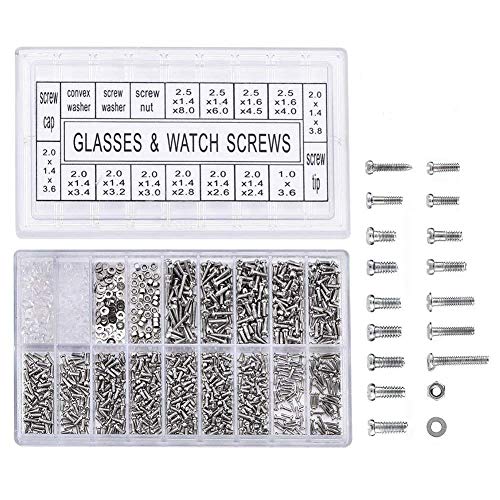 Yosoo Stainless Steel Screws, Eyeglass Sunglass Screws Repair Kit Small Tiny Screws Nut Washer Assortment for Spectacles Watch(1000 Pcs)
