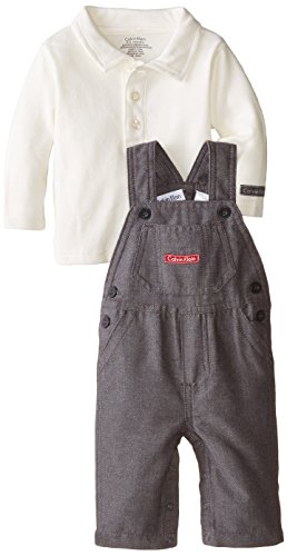 Calvin Klein Baby-Boys Newborn Vanilla Polo Top with Overall, Multi, 6-9 Months