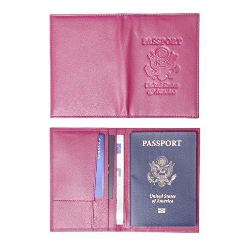 Genuine Leather USA Great Seal Passport Wallet, Case, Holder, Cover (Passion Pink)