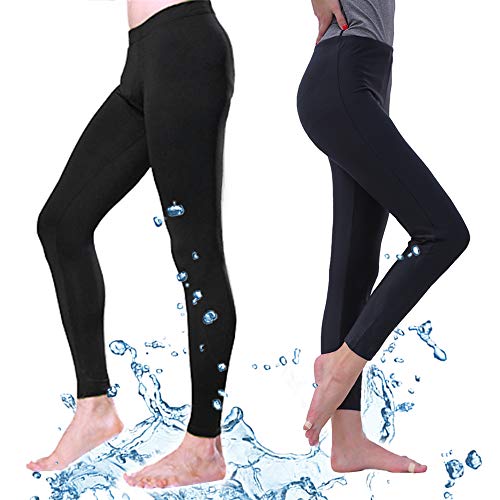 Fortuning's JDS® Men's black long swim tights UV sun protective swimming pants
