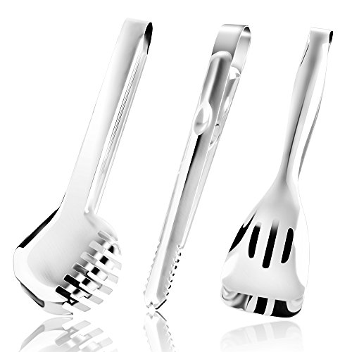 Joy Looker JT01 Premium 100% Stainless Steel Food Tongs Set of 3 Flatware Buffet Tongs 10 Inch Meat Tongs 9.5 Inch Salad Tongs 9.5 Inch Ice Tongs