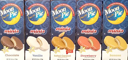 Moon Pie Minis - Complete Variety Pack - All 5 Flavors! (5 Boxes - 1 Salted Caramel - 1 Chocolate - 1 Strawberry - 1 Banana - 1 Vanilla) 6 pies per box, 30 pies total!