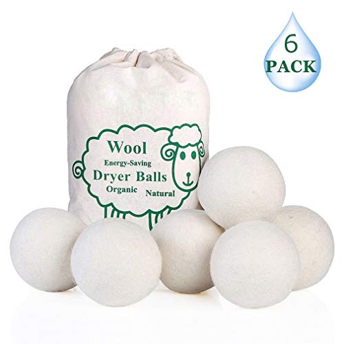 Wool Dryer Balls, Natural Organic Laundry Fabric Softener Save Drying Time Reduce Wrinkle,Reusable Hypoallergenic Baby Safe and Unscented,Better Alternative to Plastic Ball Liquid Softener-6 Pack