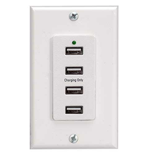 Magnadyne WC-USB-W White Wall Mount 4 USB Charging Ports (White Wall Plate included)