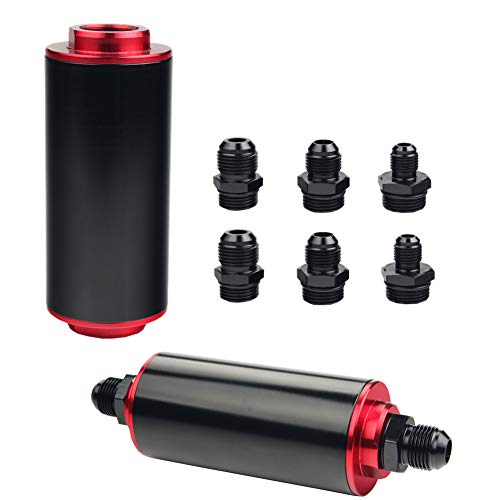 Dewhel Inline Fuel Filter High FLOW 100 Micron Cleanable SS AN6 AN8 AN10 Universal 50MM Black Aluminium