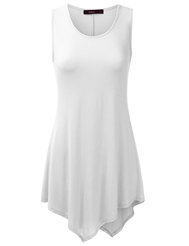 Doublju Basic Stretchy Asymmetrical Tunic Tank Tops for Women (Plus White 2XL