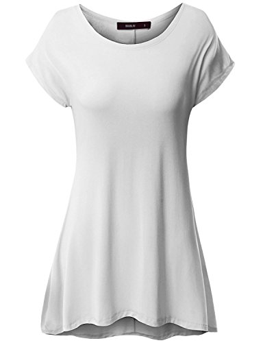 Doublju Basic Loose Fit Flared Long Tunic Tops for Women with Plus Size White 3XL