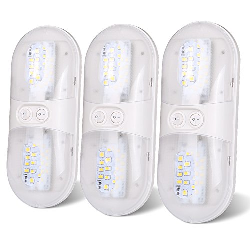 Kohree 12V LED RV Ceiling Dome Light Fixture, RV Interior Lighting for Trailer Camper with Switch Natural White (Double Dome Light 3 Packs)
