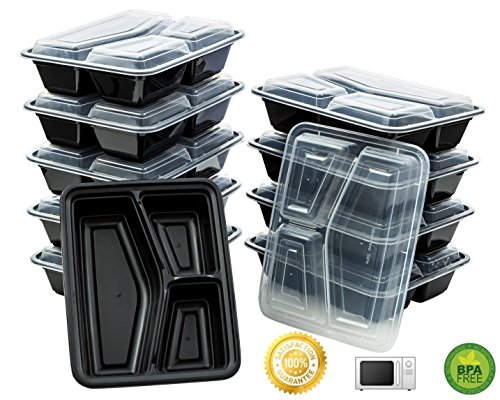 Green Direct 3 Compartment Meal Prep Containers, Microwavable Plastic Containers with Lids/Lunch Containers Pack of 20
