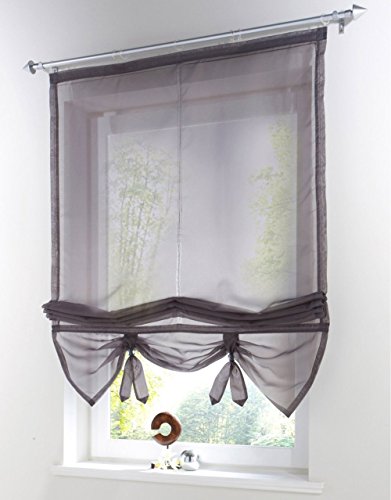 Uphome 1pcs Liftable Organza Kitchen Balcony Curtains - Tie-Up Roman Window Shades - Sheer Voilet Window Vanlance,40" by 61",Dark Grey