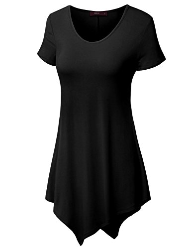 Doublju Scoop Neck Solid/Tie Dye Tunic Top with Asymmetrical for Women with Plus Size Black X-Large