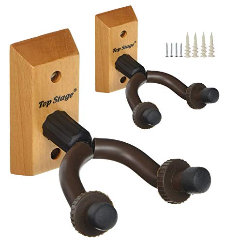 Top Stage JX15NA-Q2 Guitar Wall Mount Hanger 2-Pack, Guitar Hanger Wall Hook Holder Stand for Bass Electric Acoustic Guitar Ukulele, Natural (Pack of 2)