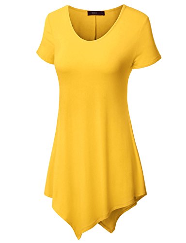 Doublju Scoop Neck Solid/Tie Dye Tunic Top with Asymmetrical for Women with Plus Size Yellow X-Large