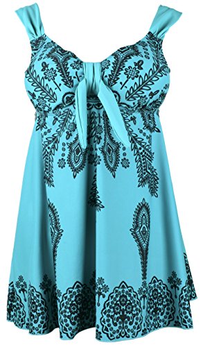 QZUnique Women's Plus-Size Swimsuit Retro Print Two Piece Pin up Tankini Swimwear Green US 22W-24W