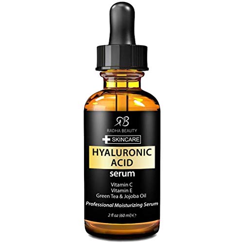 Radha Beauty Hyaluronic Acid Serum for Face, 2 fl. oz - Infused with Vitamin C + E + Green Tea & Jojoba Oil for Anti-Aging, Wrinkles, and Fine Lines - For Radiant and Healthy Skin