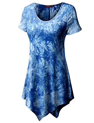 Doublju Scoop Neck Solid/Tie Dye Tunic Top with Asymmetrical for Women with Plus Size Blue 3XL