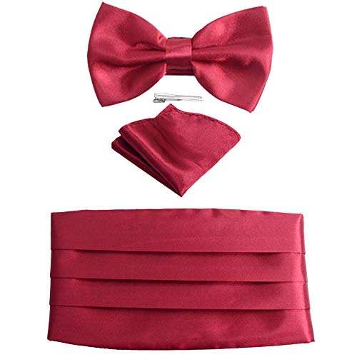 Elviros Mens Silk Grossgrain Bow Tie and Cummerbund Set with a Pocket Squa.