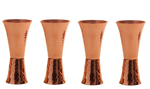 Sertodo Copper JGR-4 Double Sided Jigger, 1 oz and 2 oz Measured Shots, Hand Hammered 100% Pure Coppeer, 2 oz, Set of 4