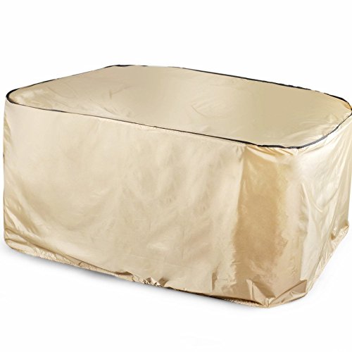 Abba Patio Outdoor/Porch Rectangular Table and Chair Set Cover, Water-repellent and Fire Resistant, All Weather Protection, Tan Color, Large