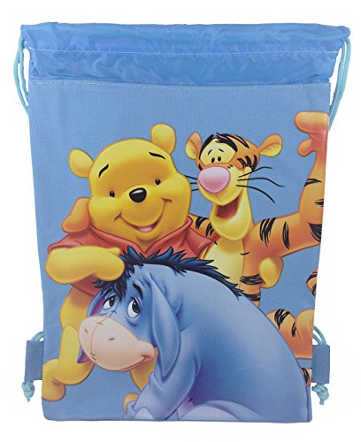 Disney Winnie The Pooh 10" X 14" Drawstring Backpack Heavy Duty Nylon Tote Bag Color (Light-(Blue, Purple, Pink)